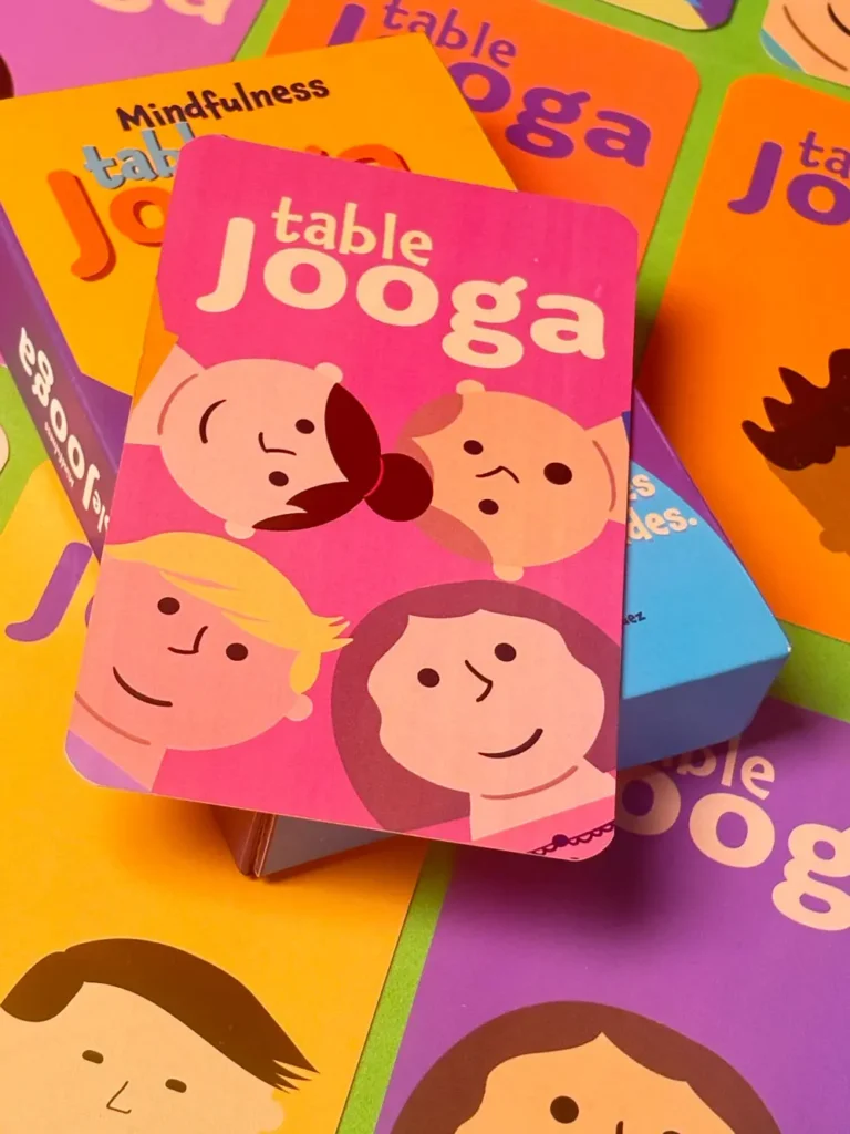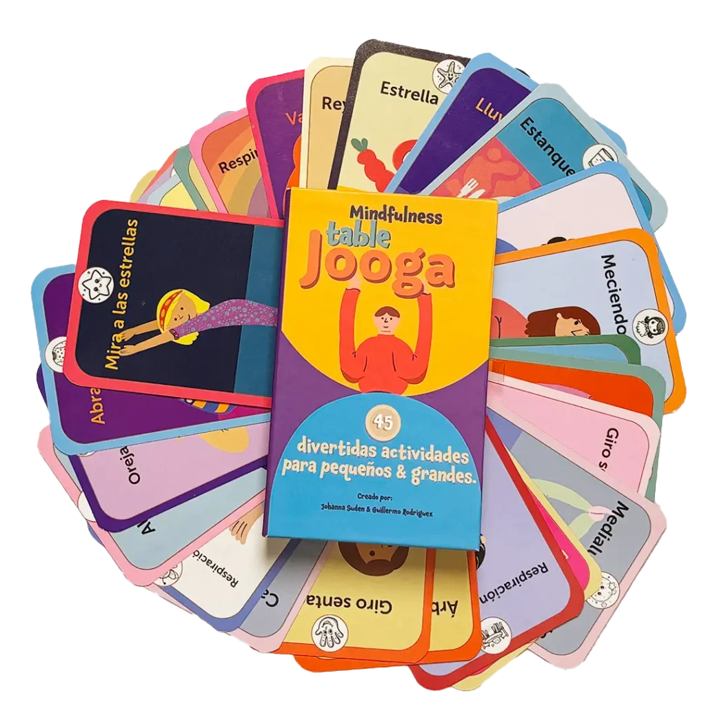 El kit Jooga incluye un mazo de 55 cartas diseñado para ayudarte a crear pausas corporales conscientes o momentos Mindfulness, justo cuando más lo necesitas.